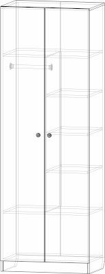 Шкаф имеет полки под белье и штангу для одежды.
