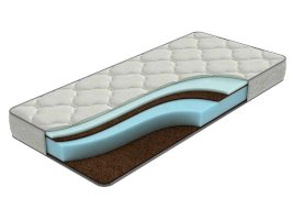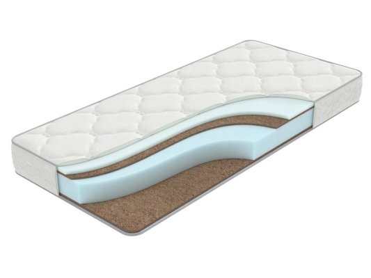 Жесткий беспружинный матрас, сочетающий искусственные и натуральные материалы: два слоя ormafoam и кокосовая койра.
