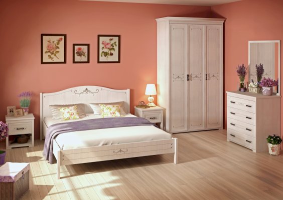 Двуспальная кровать из коллекции «Афродита» привнесет в Вашу спальную комнату легкость и очарование прованса. Простая и при этом утонченная, она создаст романтичное настроение и воздушный облик Вашей спальни. Обрамление на спинке и подножии кровати в виде элегантного декора придает дополнительную изящность, а простые ножки не утяжеляют ее внешний вид.