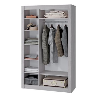 Трехстворчатый шкаф Монако относится к одноименной модульной серии. Модель не имеет вычурного декора и лишних деталей, выполнена в сдержанном и лаконичном стиле. Комплектация шкафа представляет собой несколько полок для хранения вещей в сложенном виде, а также отделение с хромированной штангой для одежды на вешалках. Для создания модели используется качественная ЛДСП цвета белого ясеня. Центральная створка является полностью зеркальной, две остальные дополнены изящными ручками.