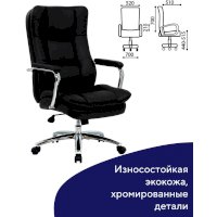 Плотная многослойная набивка, продуманная форма спинки, широкий подголовник, хромированные подлокотники с мягкими накладками создают максимально комфортные условия для продуктивной работы.