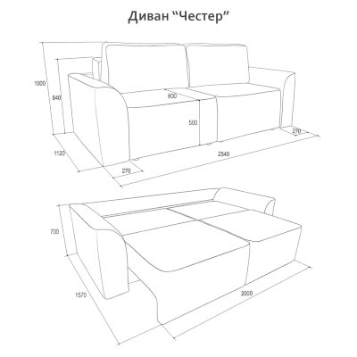 Габариты в разложенном виде: 2540х1570х840 мм