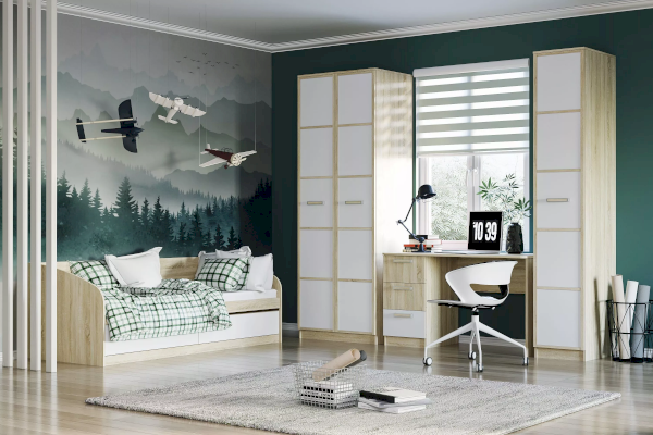 Шкаф «Фанк» предназначен для тех, кто любит выдержанный стиль. Идеально для организации подростковой комнаты. А универсальный дизайн и цветовое решение подойдет как для мальчика, так и для девочки. Отделение с 2-мя штангами позволит удобно развесить большое количество одежды на вешалках. Наличие полок позволит рассортировать одежду и поставить коробки. Два выдвижных ящика предназначены для сложенной одежды, аксессуаров, личных вещей.